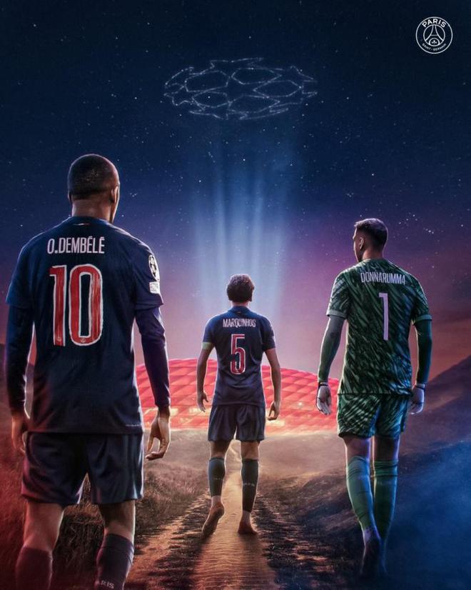 巴黎发布欧冠决赛海报:登贝莱、马尔基尼奥斯、多纳鲁马出镜